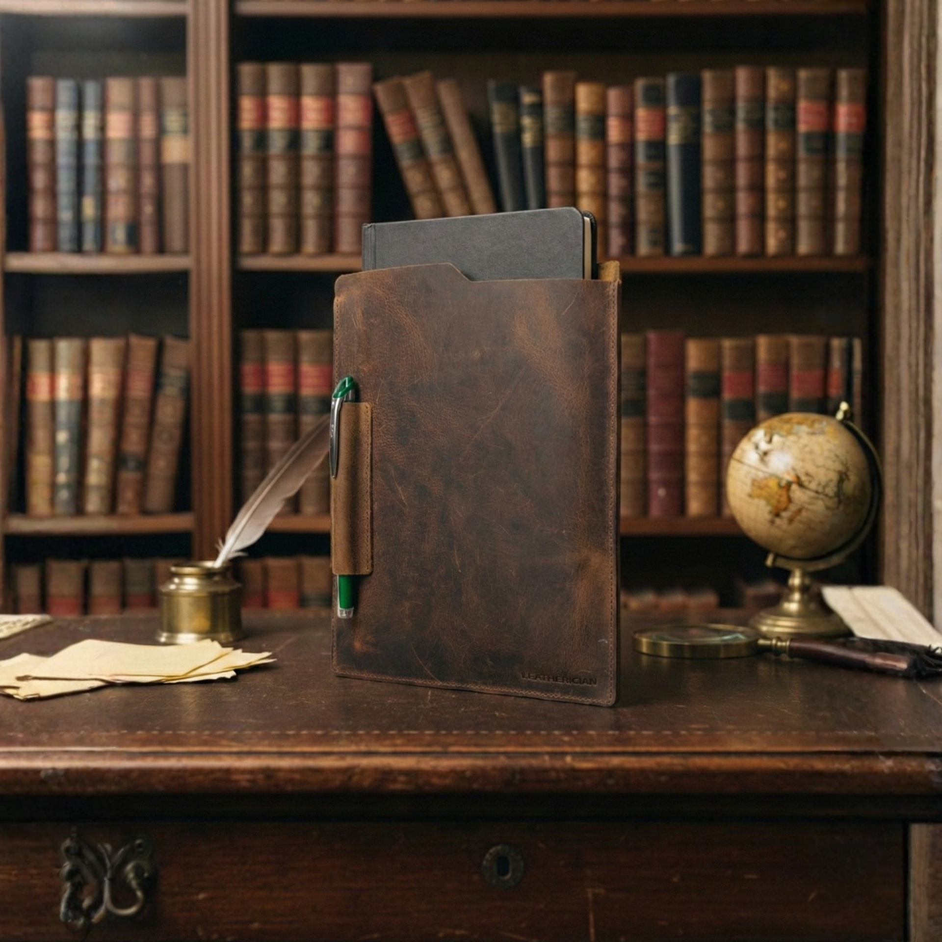 • Integrated Pen Holder: Never lose your pen again. Features a securely stitched leather loop conveniently placed on the edge for quick access.