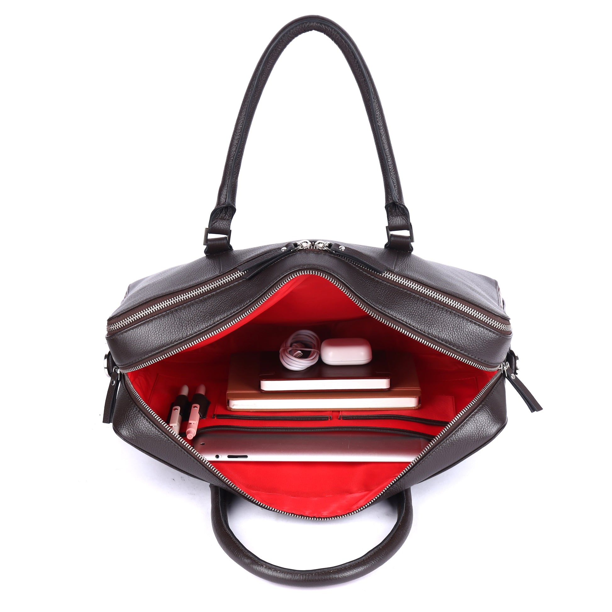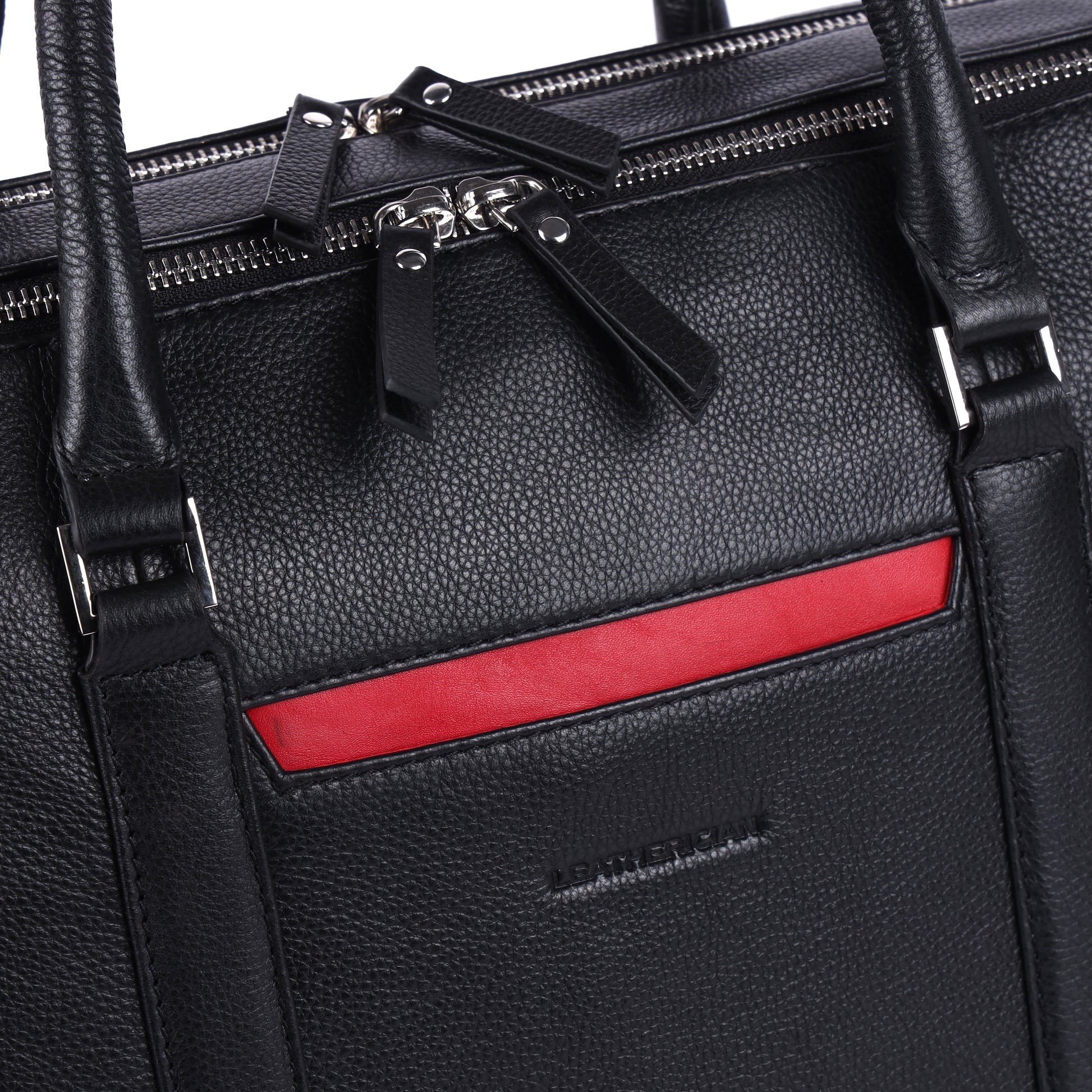The bag uses original YKK metal zippers with a polished silver finish for smooth operation and long-lasting durability.
